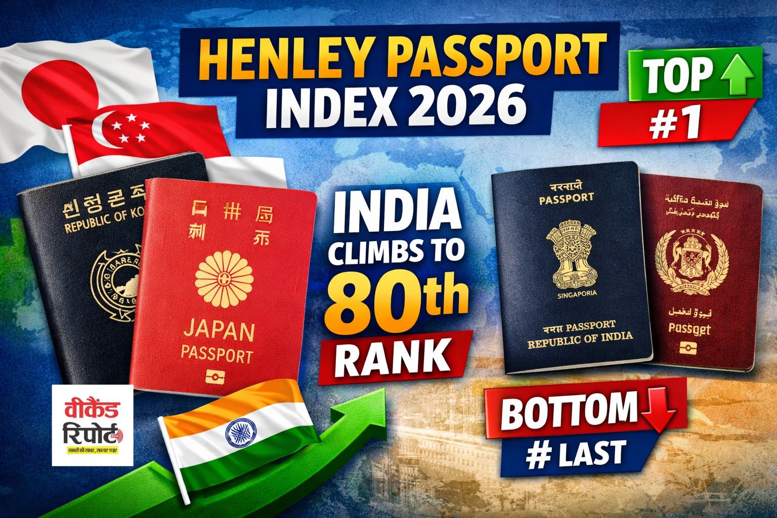 नई दिल्ली (वीकैंड रिपोर्ट)- Indian passport ranking 2026 : आज के दौर में पासपोर्ट केवल एक पहचान पत्र नहीं रह गया है, बल्कि यह किसी देश की अंतरराष्ट्रीय ताकत और नागरिकों की यात्रा स्वतंत्रता का प्रतीक बन चुका है। हर साल जारी होने वाला Henley Passport Index दुनिया के सभी देशों के पासपोर्ट की ताकत को मापता है, जिसमें यह देखा जाता है कि किसी देश के नागरिक कितने देशों में बिना वीजा या वीजा-ऑन-अराइवल यात्रा कर सकते हैं।