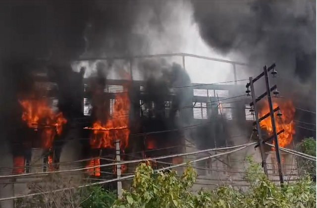 जालंधर (वीकैंड रिपोर्ट) Fire at Surgical Complex: स्थानीय सर्जिकल कॉप्लैक्स में स्थित UMA फैक्टरी में भीषण आग लगने से लोगों में हड़कंप मच गया। फैक्टरी कर्मचारीयों ने तुरंत घटना की सूचना दमकल विभाग को दी। जिसके बाद मौके पर पहुंची दमकल विभाग की टीम के द्वारा आग पर काबू पाया गया। लेकिन आग पर काबू पाने के लिए दमकल विभाग के कर्मचारीयों को काफी मश्कत करनी पड़ी। हालांकि आग लगने के कारणों का पता नहीं चल पाया है। बताया जा रहा है कि फैक्टरी में बॉल बनाने का काम होता है। स्थानीय लोगों के मुताबिक फैक्टरी में निर्माणकार्य चल रहा था। इस दौरान वेल्डिंग की चिंगारी से आग लगने का अंदाजा लगाया जा रहा है। वहीं घटना की सूचना मिलते ही पुलिस अधिकारी भी मौके पर पहुंचें और जांच शुरु कर दी।