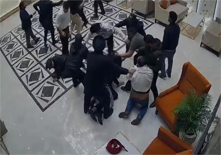 घटना की पूरी वारदात होटल में लगे सीसीटीवी कैमरों में कैद हो गई है। फुटेज में एक व्यक्ति को फर्श पर घसीटते हुए देखा गया है, जबकि बाद में अन्य लोग बीच-बचाव के लिए पहुंचे और दोनों पक्षों को अलग किया।