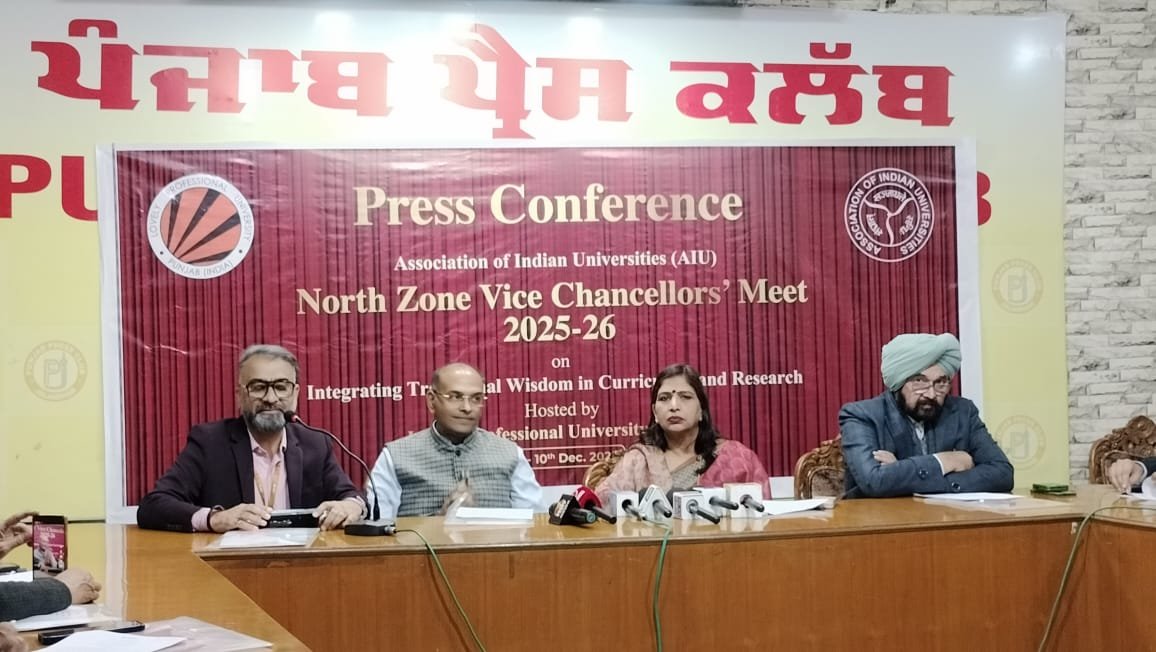 जालंधर (वीकैंड रिपोर्ट)- AIU Vice Chancellors Meet : पंजाब प्रेस क्लब में प्रेस वार्ता का आयोजन किया गया। इसमें वार्ता को सम्बोधित करते हुए लवली प्रोफेशनल यूनिवर्सिटी के एक्सिक्यूटिव डीन डॉ सौरभ लखनपाल ने बताया की एआईयू (AIU) 9-10 दिसंबर, 2025 को ‘नॉर्थ जोन वाइस चांसलर्स कॉन्फ्रेंस 2025-26’ आयोजित कर रहा है। इसकी मेजबानी ‘लवली प्रोफेशनल यूनिवर्सिटी, (LPU) फगवाड़ा, पंजाब’ कर रहा है। माननीय राज्यपाल पंजाब गुलाब चंद कटारिया इस मीट के उद्घाटन समारोह में मुख्य अतिथि होंगे। कॉन्फ्रेंस का विषय ‘पाठ्यक्रम और अनुसंधान में पारंपरिक ज्ञान को एकीकृत करना’ है। इस मीट के उद्घाटन समारोह जो 09 दिसंबर, 2025 को सुबह 10.00 बजे लवली प्रोफेशनल यूनिवर्सिटी, फगवाड़ा, पंजाब में आयोजित होगा।