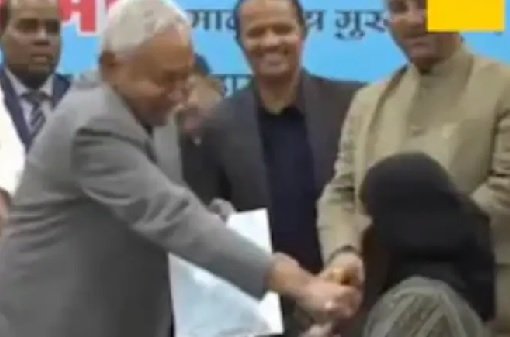 घटना के वीडियो में साफ दिख रहा है कि जैसे ही नुसरत परवीन नियुक्ति पत्र लेने आगे बढ़ती हैं, मुख्यमंत्री उनके चेहरे के हिजाब को पकड़ते हैं। डिप्टी सीएम सम्राट चौधरी उन्हें रोकने की कोशिश करते नजर आते हैं, लेकिन तब तक हिजाब खींचा जा चुका होता है।