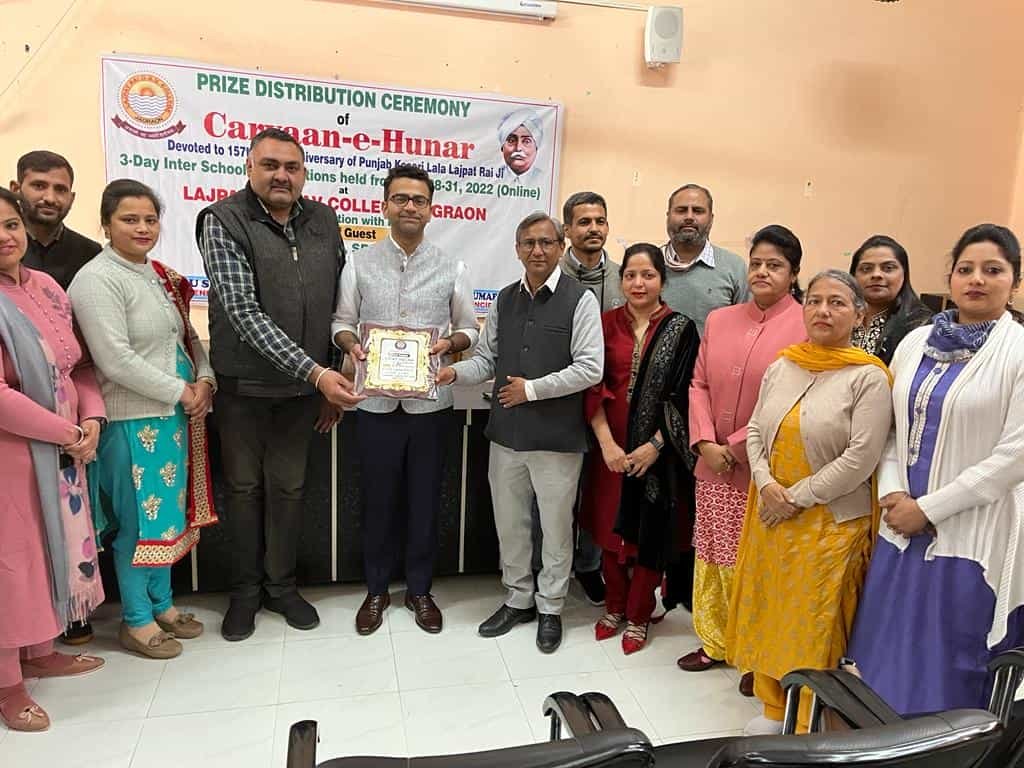 जगराओं (वीकैंड रिपोर्ट) : caravan-e-hunar : 15 फरवरी 2022 महान स्वत्रन्ता सैनानी पंजाब केसरी लाला लाजपत राय जी के 157वें जन्मदिन समारोह को समर्पित “कारवां-ए-हुनर” विजेताओं के सम्मान में लाजपत राय DAV कॉलेज, जगराओं के प्रांगण में सम्मान समारोह का आयोजन किया गया। जिसकी अध्यक्षता उप न्यायधीश जगराओं विकास हीरा जी ने की मुख्य मेहमान का स्वागत करते हुऐ कालज के प्रधानाचार्य डाःअनुज कुमार शर्मा ने मुख्य मेहमान तथा विभिन्न स्कूलों से आये हुऐ विद्यार्थियों तथा शिक्षकों का स्वागत किया उन्होने मेहमानों को कालेज के स्वर्णिक इतिहास तथा इस कार्यक्रम की जानकारी देते हुए कहा कि लाला लाजपत राय को समर्पित इस कार्यक्रम का आयोजन 28 से 31 जनवरी 2022 तक आनलाईन किया गया था जिसमें 13 विभिन्न प्रतियोगिताएं करवाई गई और हर प्रतियोगिता में सैंकड़ों विद्यार्थियों ने अपनी कला के जौहर दिखाऐ जिसमें निबन्ध लेखन, एकल नृत्य, कविता पाठ, पोस्टर बनाना, मेंहन्दी प्रतियोगिता एवं रंगोली आदि के मुकावले करवाऐ गये