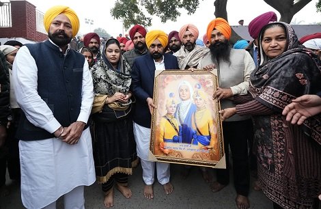 फतेहगढ़ साहिब (वीकैंड रिपोर्ट) – CM Bhagwant Mann paid obeisance at Sri Fatehgarh Sahib : पंजाब के मुख्यमंत्री भगवंत मान ने श्री फतेहगढ़ साहिब में माथा टेका। इस मौके पर उन्होंने कहा कि दशमेश पिता धन धन साहिब श्री गुरु गोबिंद सिंह जी, बाबा जोरावर सिंह जी, बाबा फतेह सिंह जी और माता गुजर कौर की शहादत की याद में, उन्हें आज श्री फतेहगढ़ साहिब के सालाना जोड़ मेले के मौके पर अपने परिवार के साथ माथा टेकने का सौभाग्य मिला। उन्होंने कहा कि इस दौरान उन्होंने गुरु के चरणों में शीश झुकाया और संगत के दर्शन किए। देश के प्रति छोटे बेटों की शहादत की मिसाल दुनिया के इतिहास में कहीं नहीं मिलती। उनका पक्का इरादा और जुनून दुनिया के अंत तक हमारी पीढ़ियों को प्रेरणा देता रहेगा।
