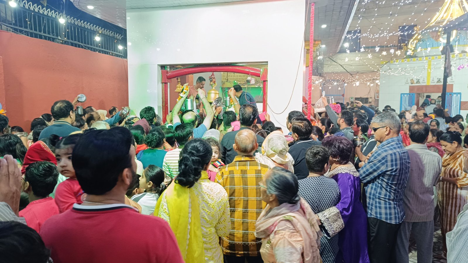 कई भक्त अपने हाथों में पूजा की थालियां, दूध के बर्तन और दीपक लेकर माता को अर्पित करने पहुंचे, लेकिन भीड़ इतनी अधिक थी कि लोगों को आगे बढ़ने में काफी दिक्कत हुई।