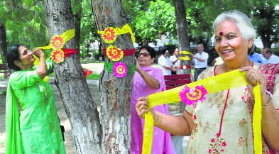 पेड़ को बांधी जा रही हैं राखी आए जानीए।